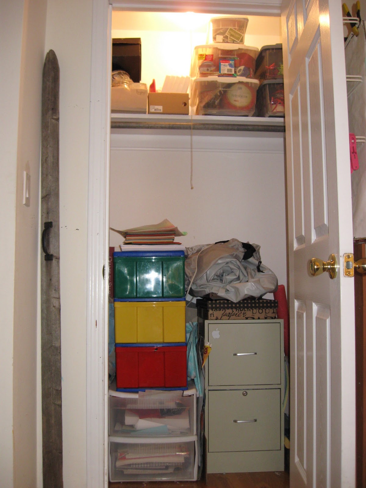 I failed to take "before" pictures of the closet, but trust me, I took my life in my hands every time I opened it. Much better now.